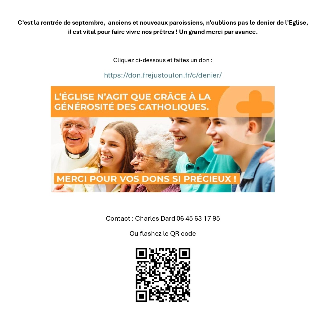 Vous bénéficiez de 66 % de réduction fiscale dans la limite de 20 % de votre revenu imposable (art. 200 CGI). L’association diocésaine de Fréjus-Toulon (ADFT) produira un reçu fiscal que vous recevrez automatiquement en début d’année prochaine.